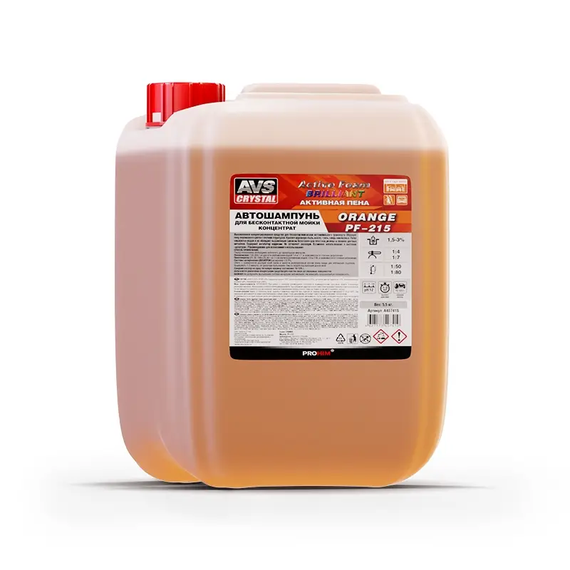 Автошампунь для б/к мойки AVS "Active Foam Brilliant" 1: 4-7 PF-215 ORANGE 5 кг