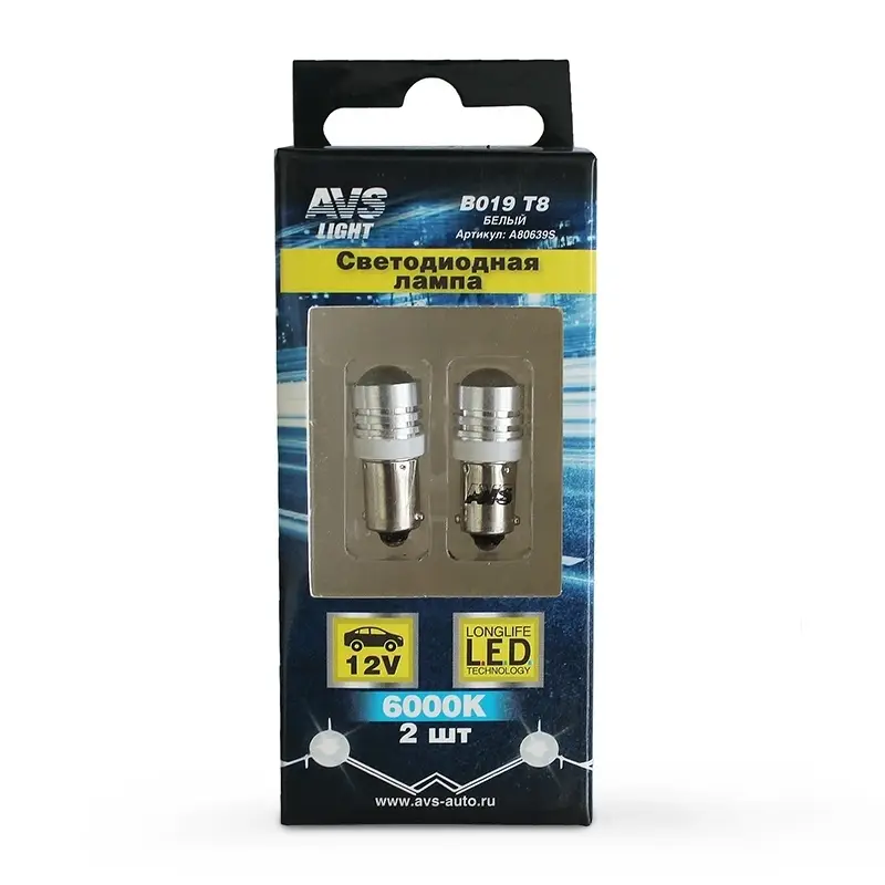 B019 Т8/белый/ (BA9S) 1W T4W, блистер 2 шт