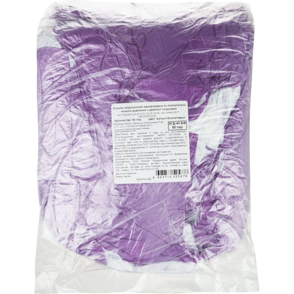Бахилы н/с, п/э 2х слойн, 3,5г, ЭГД-40/50/ФИОЛ, бело-фиол, 50пар/уп