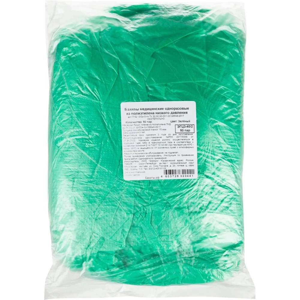 Бахилы н/с, п/э с 2й рез. 3,5г, ПНД-15/2р-З, зеленые, 50 пар/уп