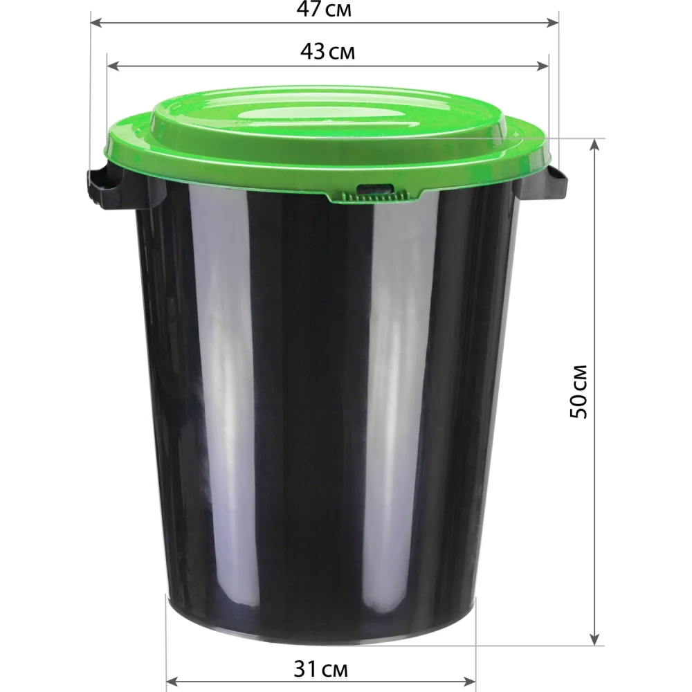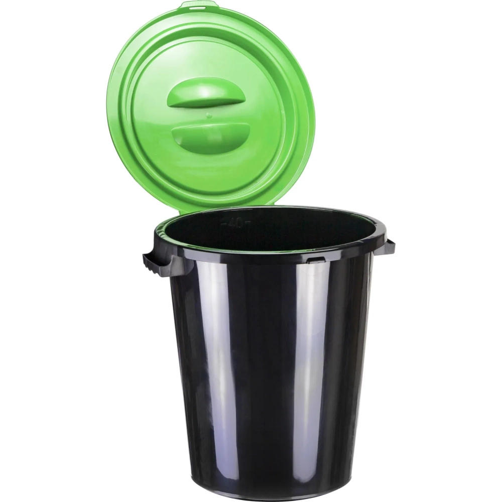Бак для отходов 40л пластик, черный с зеленой крышкой М 2392