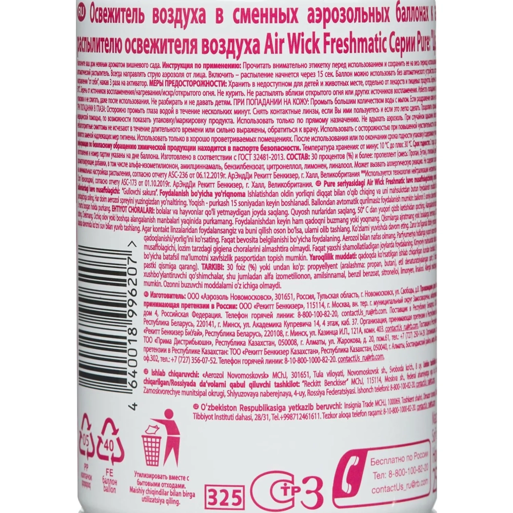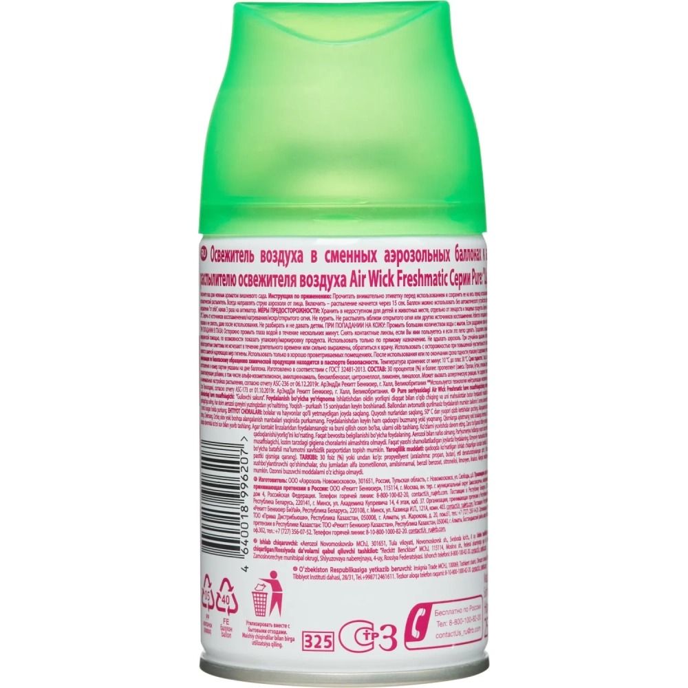 Баллон сменный для автоосвежителя Air Wick Pure Цветущая сакура, 250мл