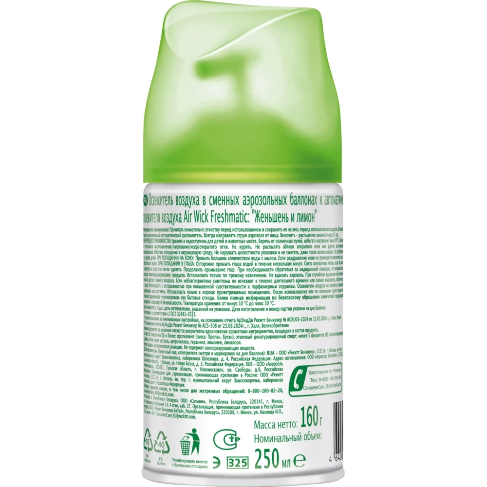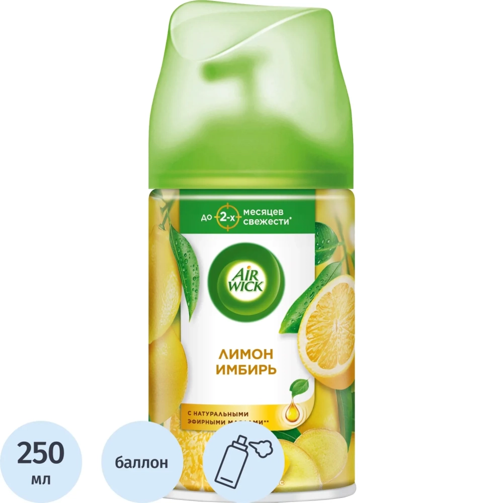 Баллон сменный для автоосвежителя Air Wick Женьшень и лимон/имбирь, 250мл