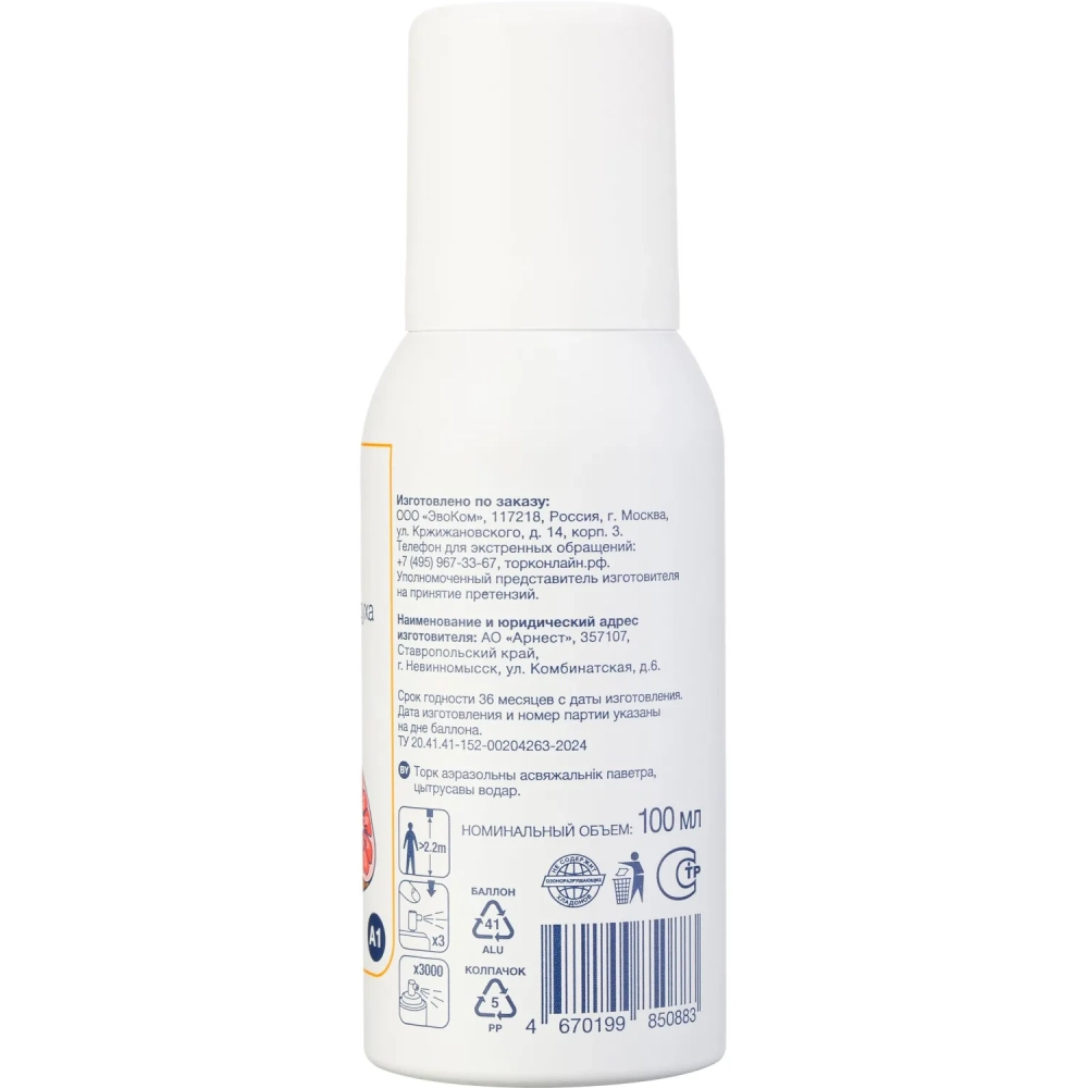 Баллон сменный для автоосвежителя Торк Стандарт А1 цитрусовый 100мл 611600
