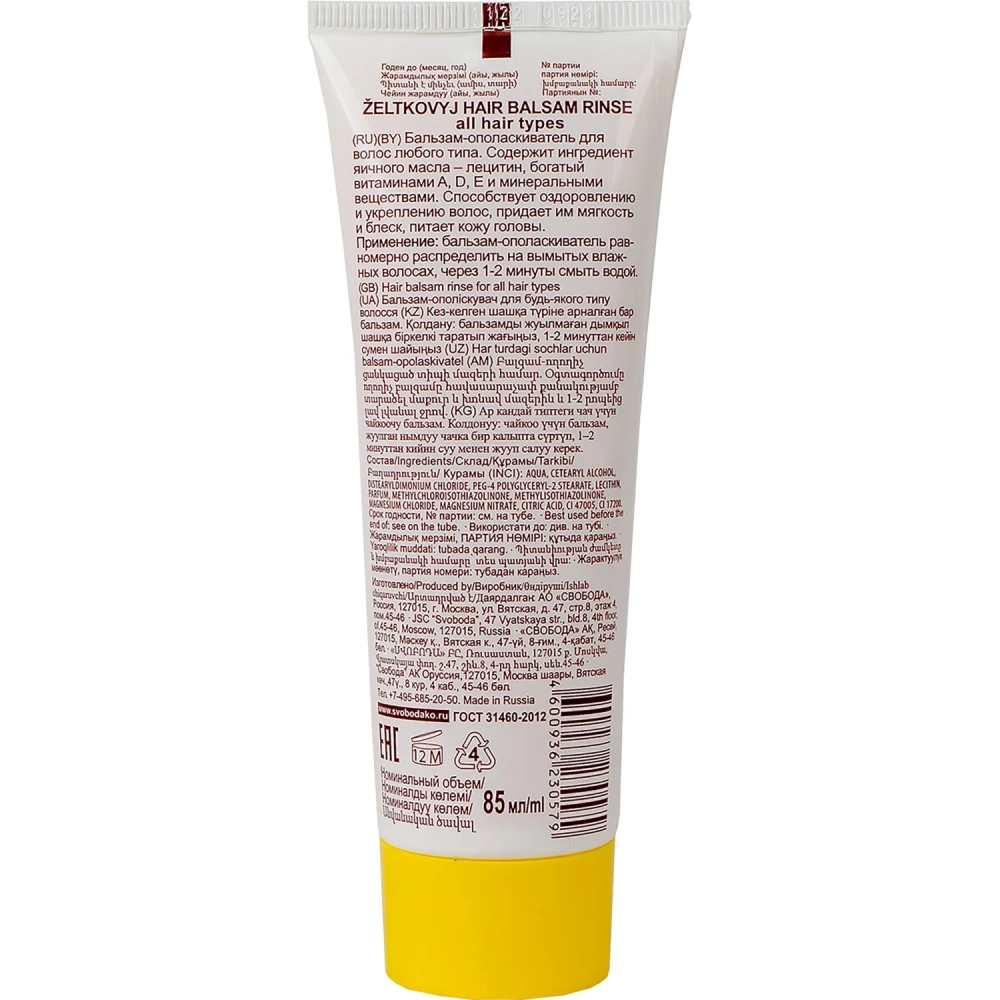 Бальзам SVOBODA Желтковый д/волос люб.типа туба 85 мл