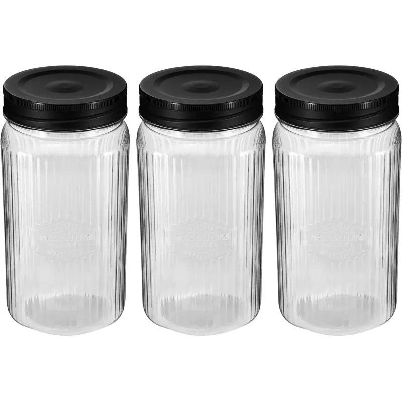 Банка квадратная с рельефом PREMIUM 1,3л, 3шт (Черный)