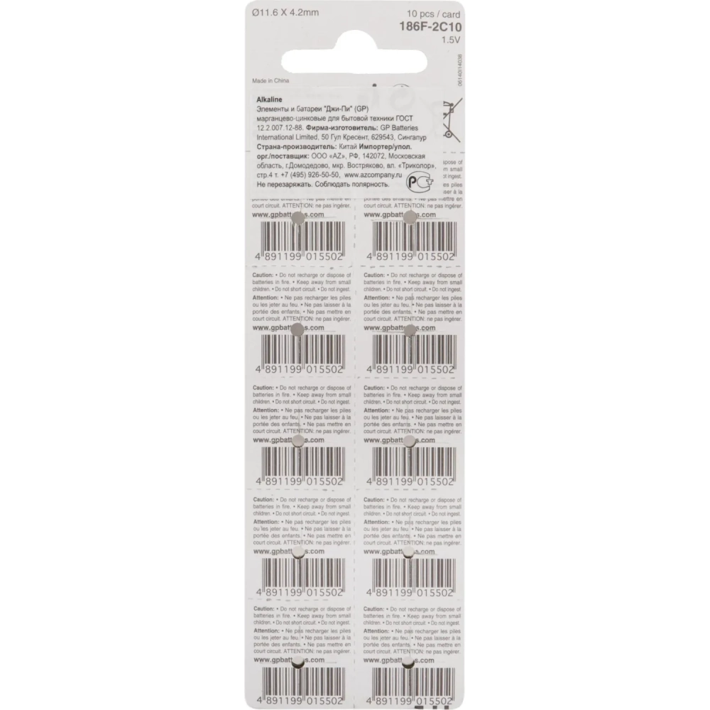 Батарейка для часов GP 186F-2C10/186FRA-2C10, 10 шт/уп