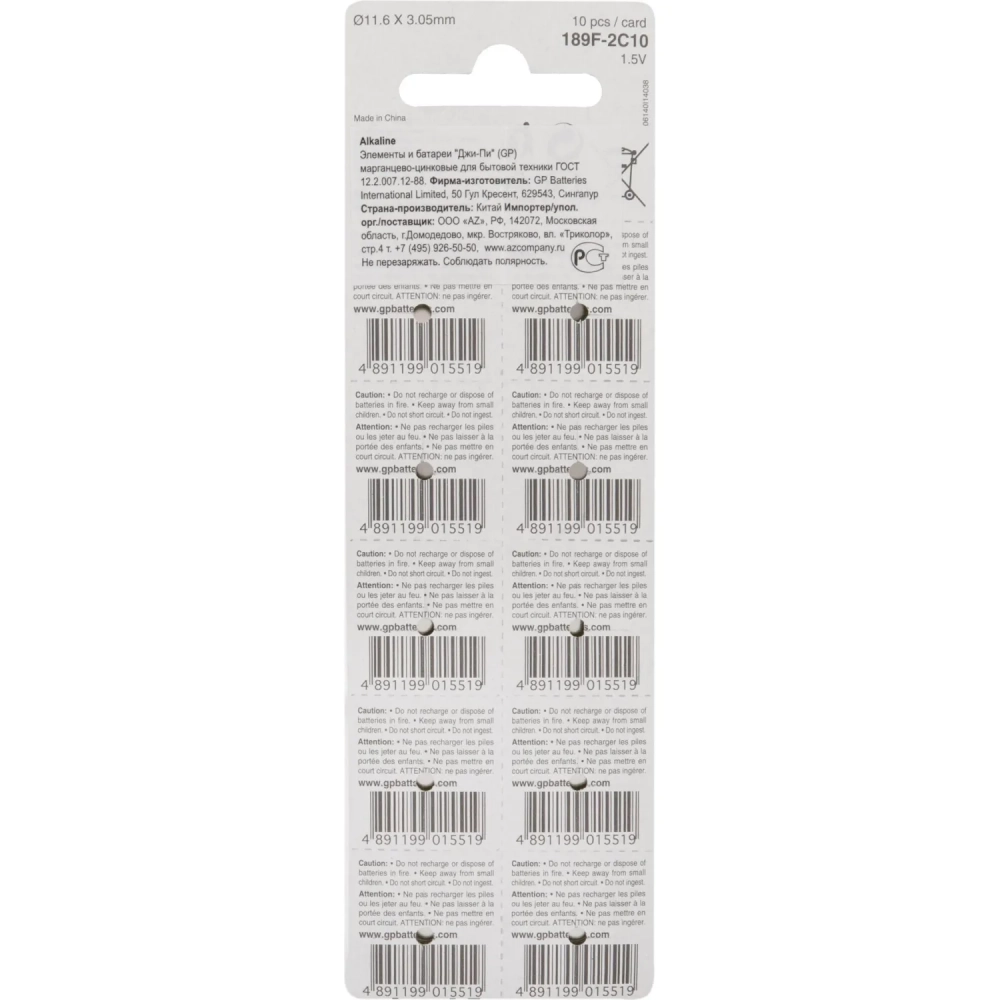 Батарейка GP AG10/LR1130, алкалин., бл/10 189-BC10/189F-2CR10