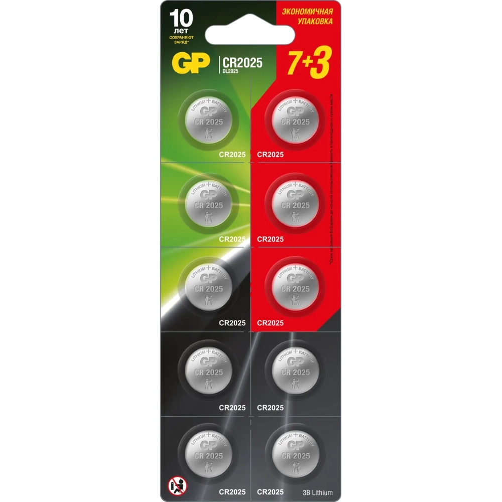 Батарейка GP CR2025, литий, GP CR2025-7/3-2CR10 10шт в наб