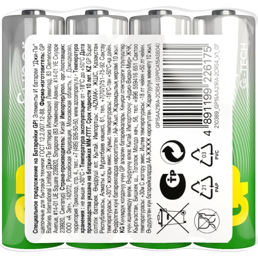 Батарейка GP Super эконом AAA/LR03/24A GP24ARS-2SB4/15AA21RA-2CRS4 4шт/уп