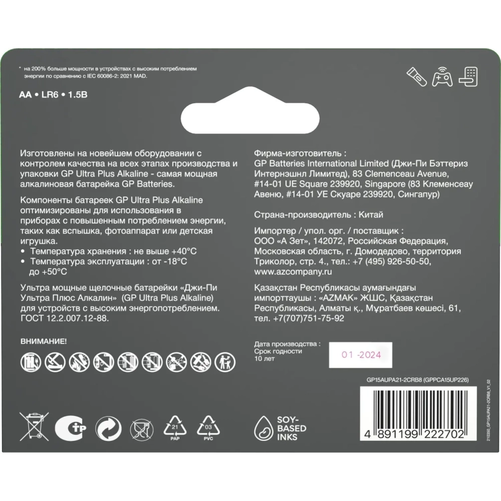 Батарейка GP Ultra+ Alkaline LR6 (АА) 8шт/уп (GP15AUPA21-2CRB8)