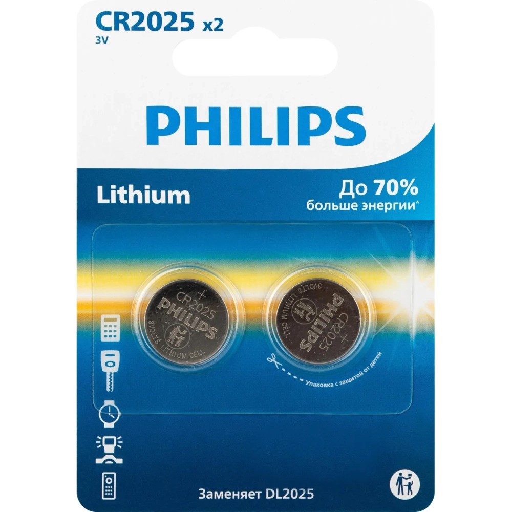 Батарейка Philips CR2025-2BL/CR2025P2/51 литиевые 2шт/уп