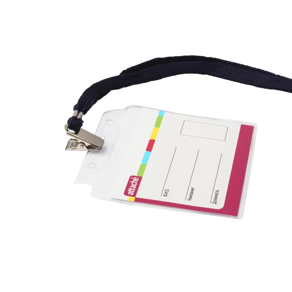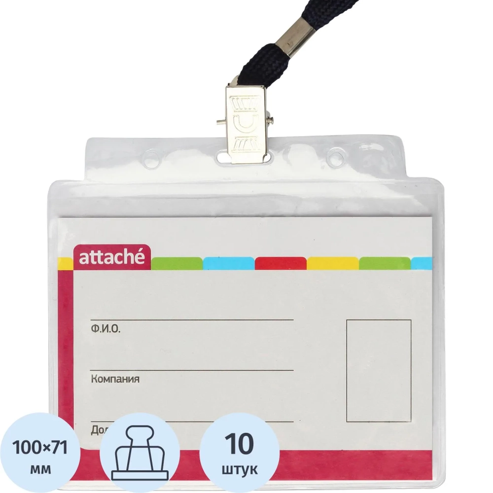 Бейдж 107х83мм Attache для карт 100х71мм метал зажим/тесьма 1015, 10 шт.