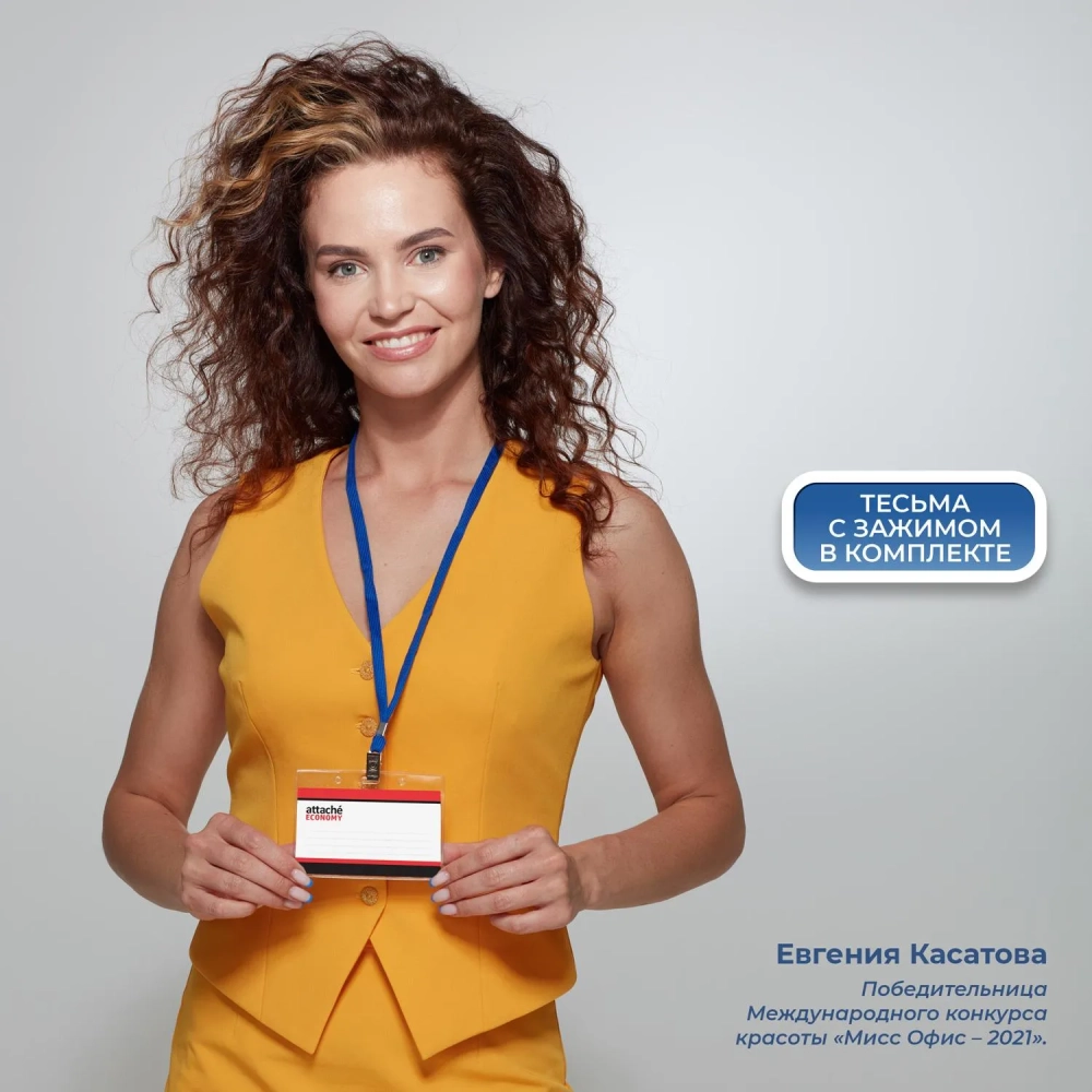 Бейдж Attache Economy 120х87мм металл зажим/тесьма синий, 10шт. в уп