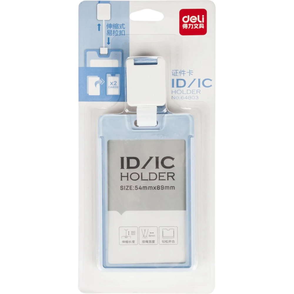Бейдж Deli 64803 вертик.,с держат.,вкладыш:89x54мм,влагозащ.,голубой,блист
