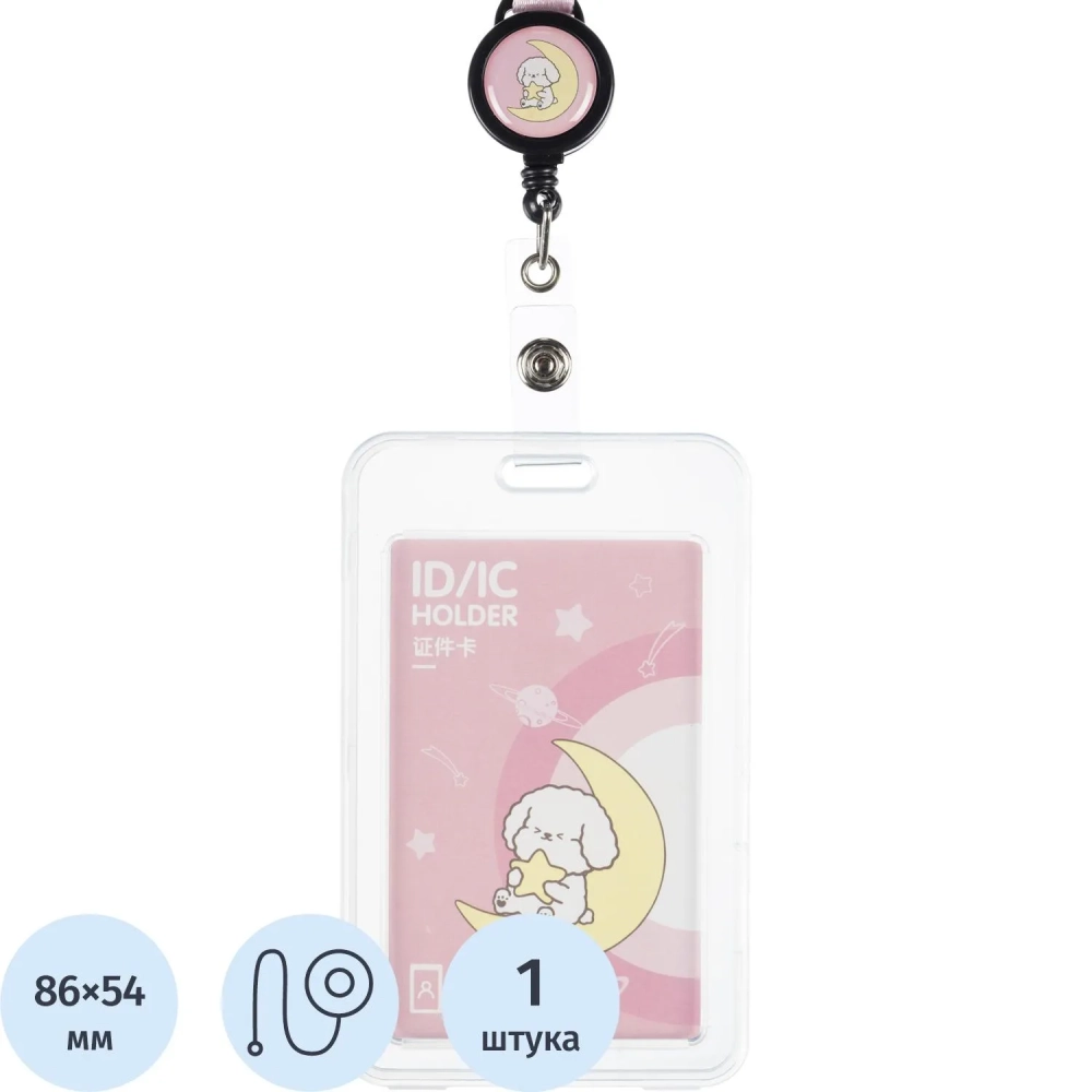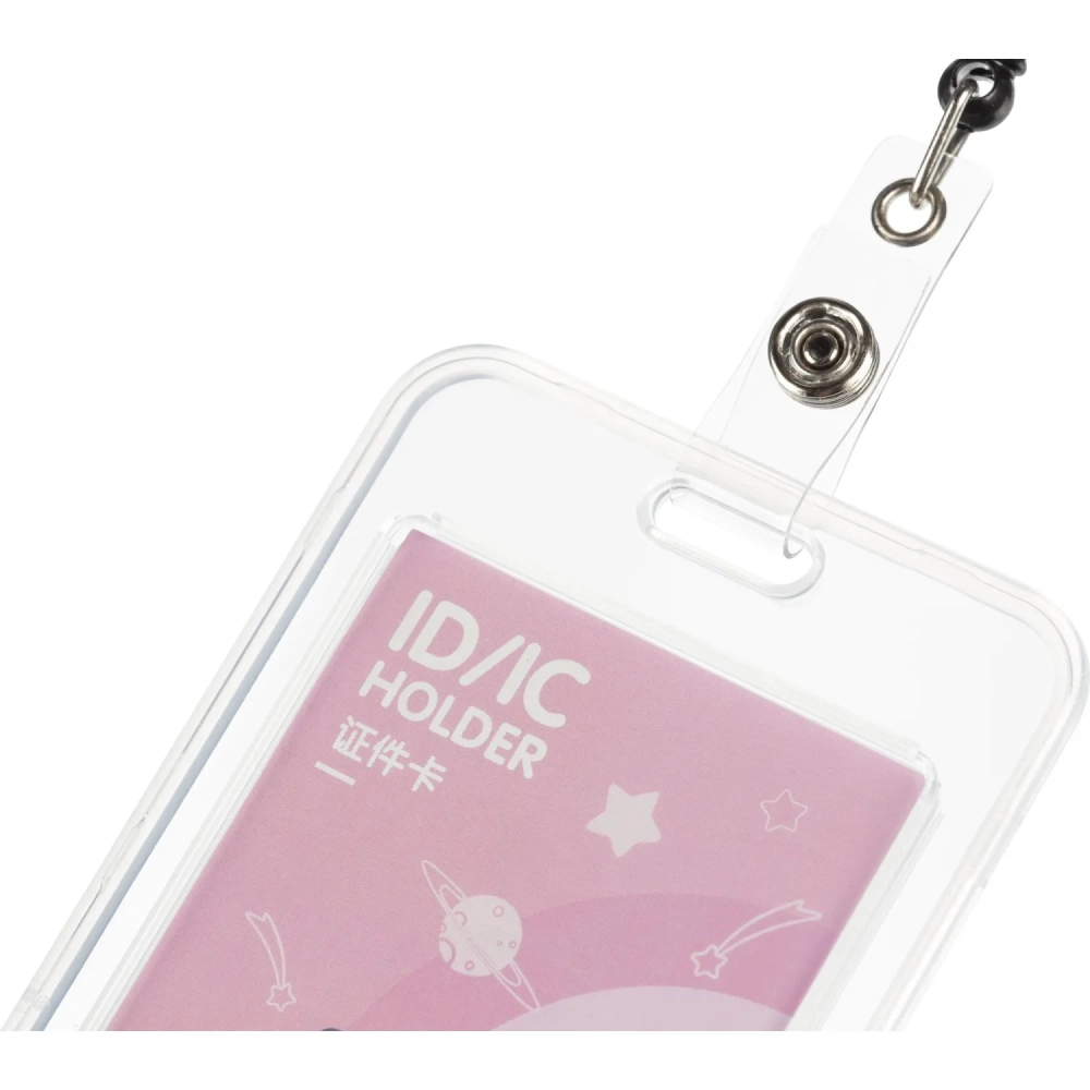 Бейдж Deli вертик.54x86 мм,жест.,держат,замок на кноп+рулетка и тесьма,роз