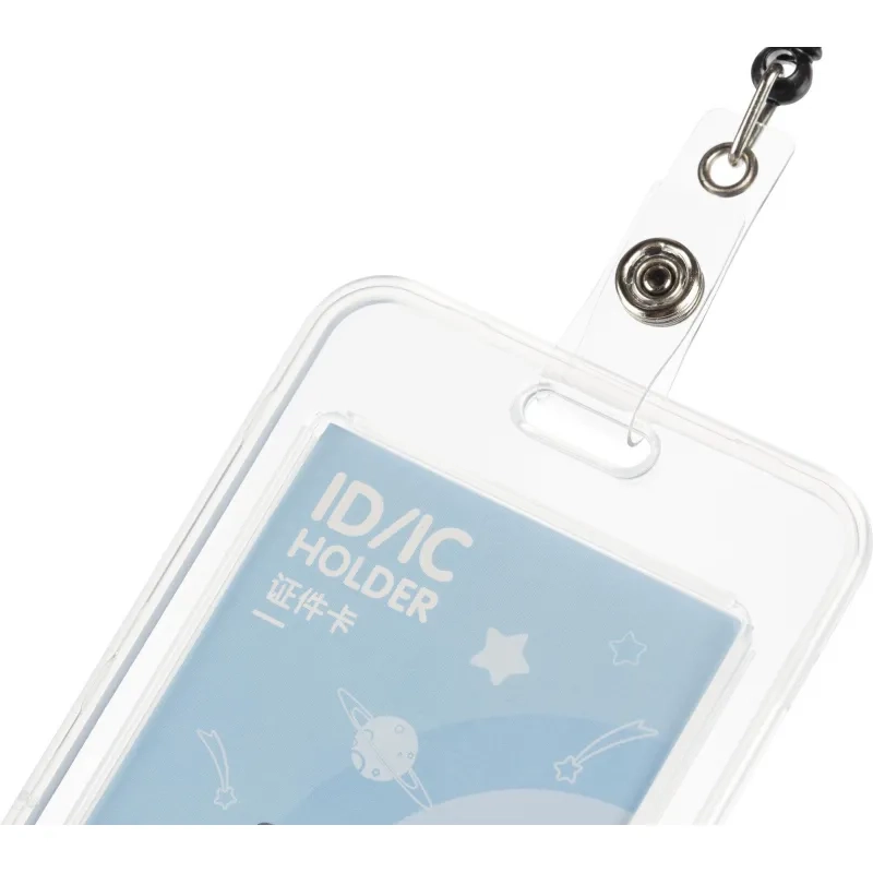 Бейдж Deli вертик.54x86 мм,жест.,держат,замок на кноп+рулетка и тесьма,син