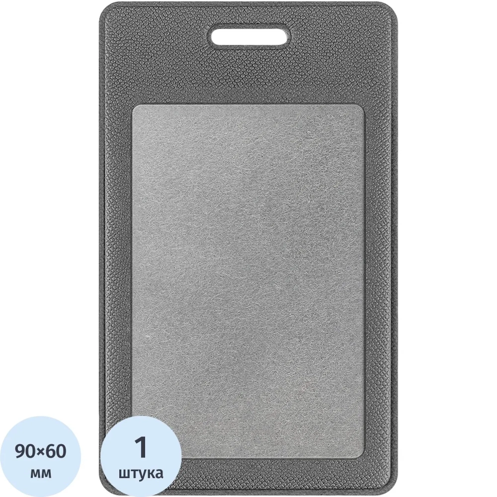 Бейдж вертикальный для карты, внутр. разм 60x90мм Экокожа графит EK-3V-1