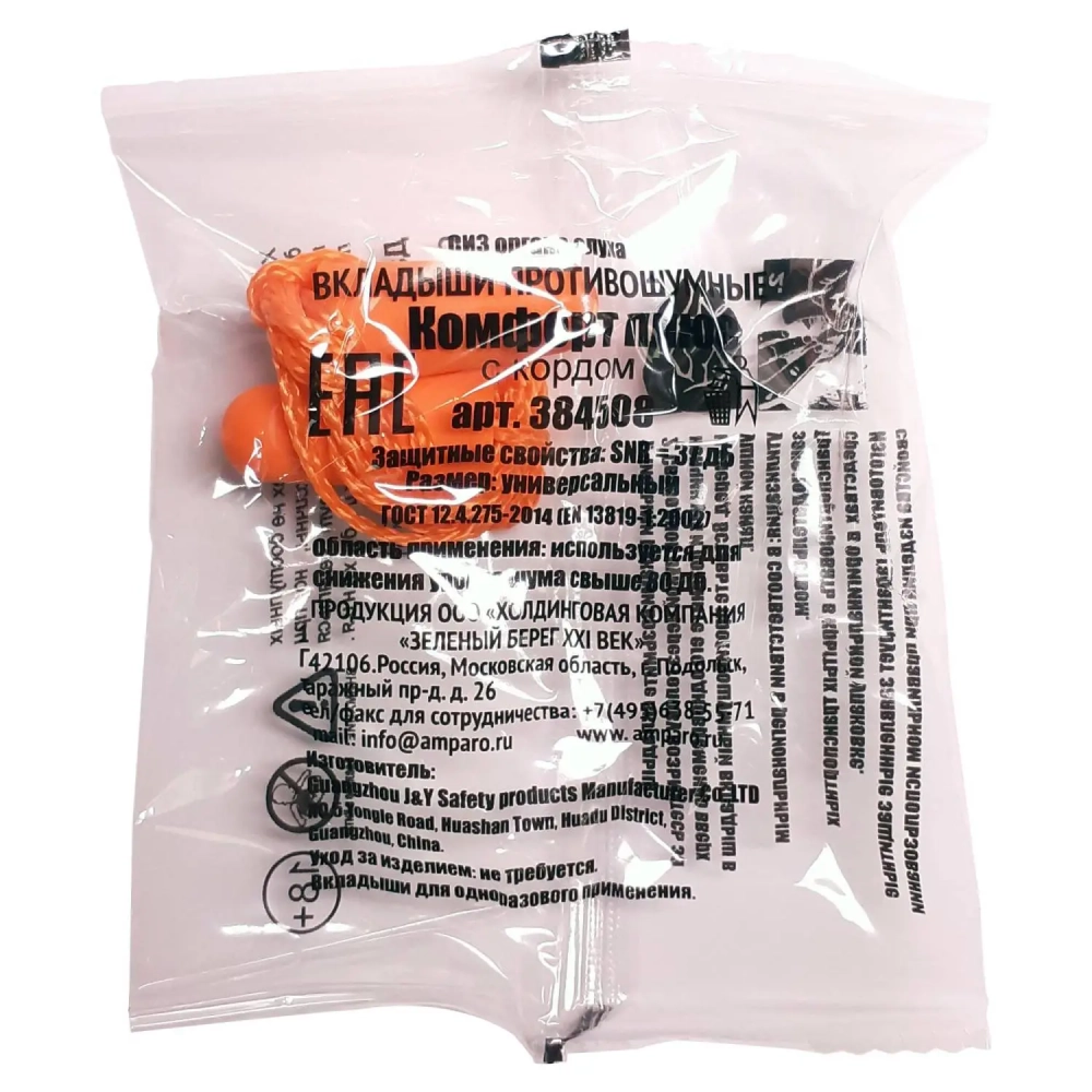 Беруши Ампаро Комфорт плюс со шнурком (арт.произв.384508) (100 пар/уп.)