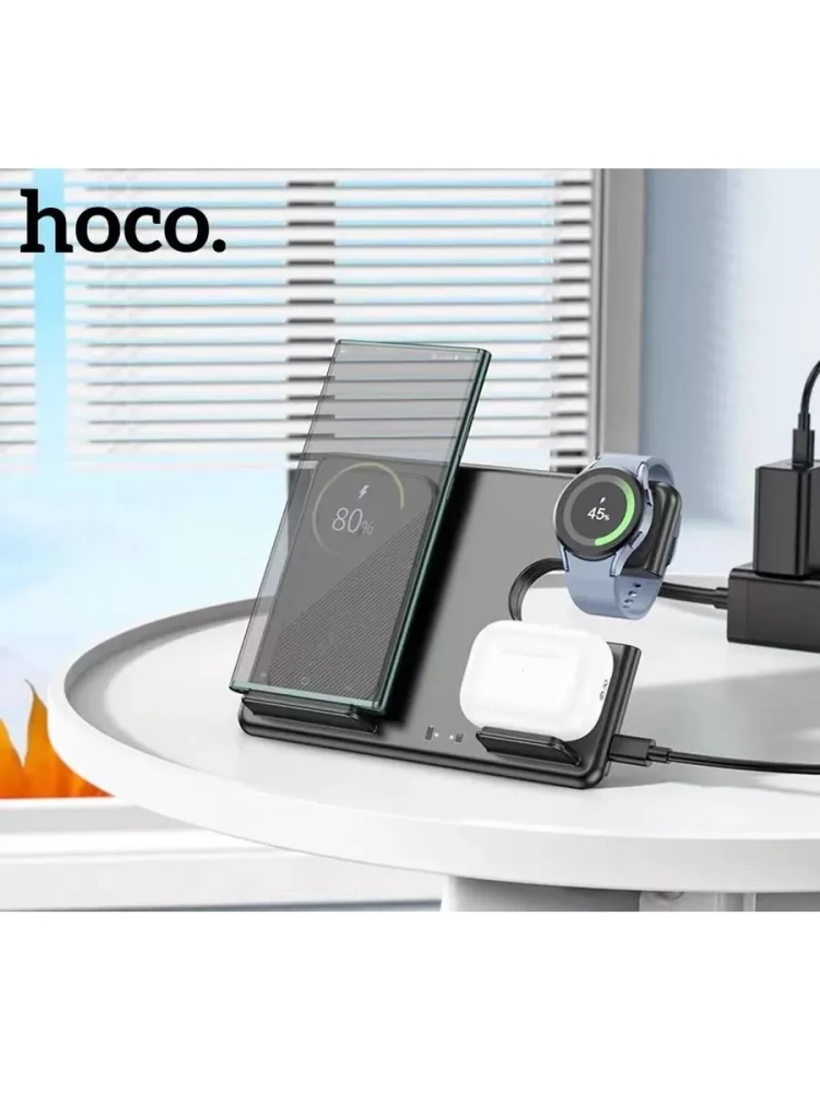 Беспроводное зарядное устройство CQ4 Folding Magnetic 3 в 1 HOCO черное