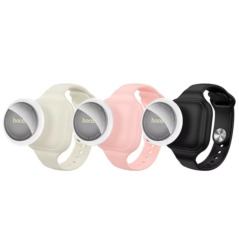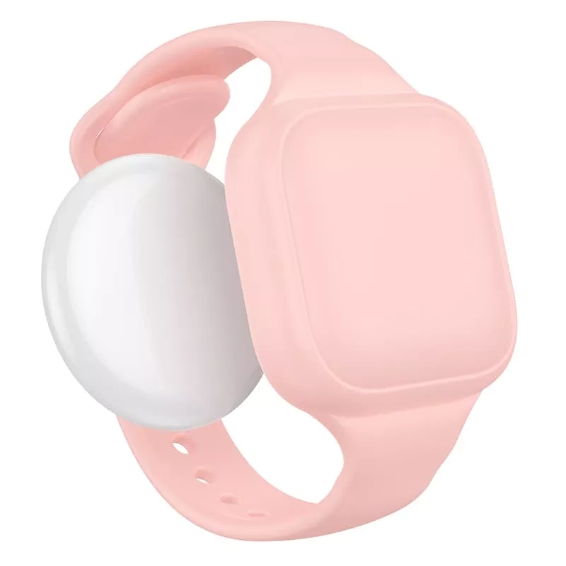 Беспроводная метка GPS трекер маячок AirTag Hoco E91E Tiger для iphone с розовым ремешком