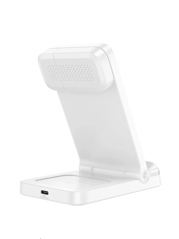 **Зарядка 3 в 1**: Уникальная функция позволяет одновременно заряжать три устройства. Вы можете подзаряжать свой iPhone, наушники и часы, не беспокоясь о множестве проводов и адаптеров. Это особенно удобно для тех, кто ценит порядок на рабочем столе.