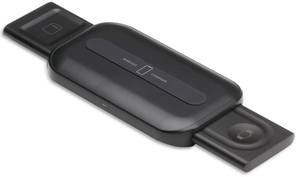 Складное компактное устройство 3-в-1, предназначено для зарядки устройств, которые способны заряжаться беспроводным способом.