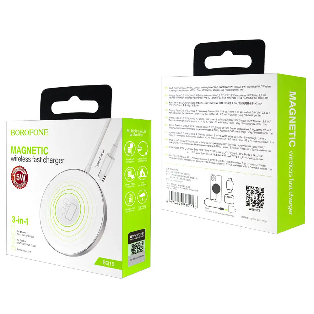 * Беспроводное зарядное устройство BQ18 15W 3 в 1 BOROFONE белое
