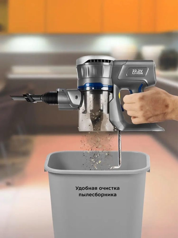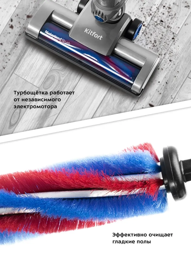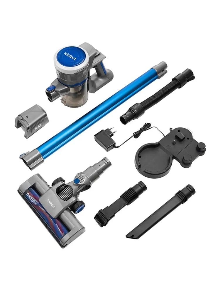 Вертикальный беспроводной пылесос Kitfort КТ-541 удобен при локальной и генеральной уборке. Он компактен, всегда под рукой и готов к работе, а при отсоединении удлинительной трубки превращается в ручной пылесос. Благодаря работе от аккумулятора не нужно включать вилку в розетку, провода не мешают под ногами, и вы можете использовать пылесос там, где нет электричества, например, в салоне автомобиля или в дачной беседке. Пылесос оснащен маневренной щеткой для пола, которая вращается в двух плоскостях.