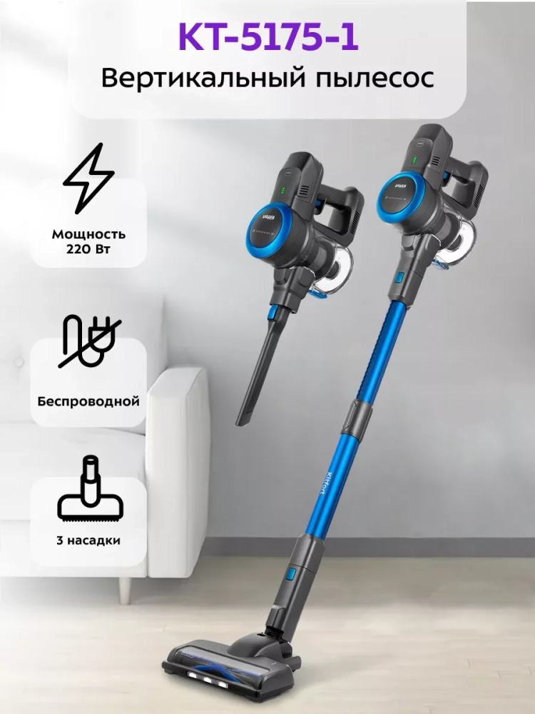 Беспроводной пылесос вертикальный КТ-5175 (2 в 1) 220 Вт