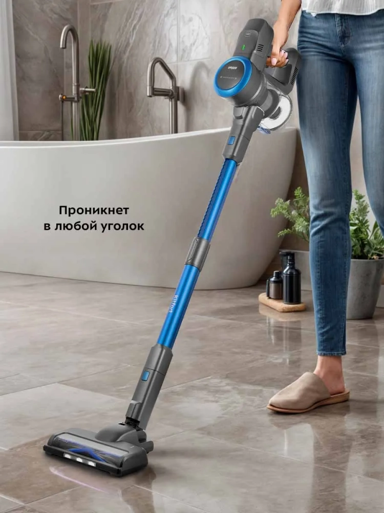 Беспроводной вертикальный пылесос Kitfort КТ-5175 очень удобен при локальной и генеральной уборке. Он компактен, всегда под рукой и готов к работе. При отсоединении телескопической трубки и установке насадки он превращается в ручной пылесос.