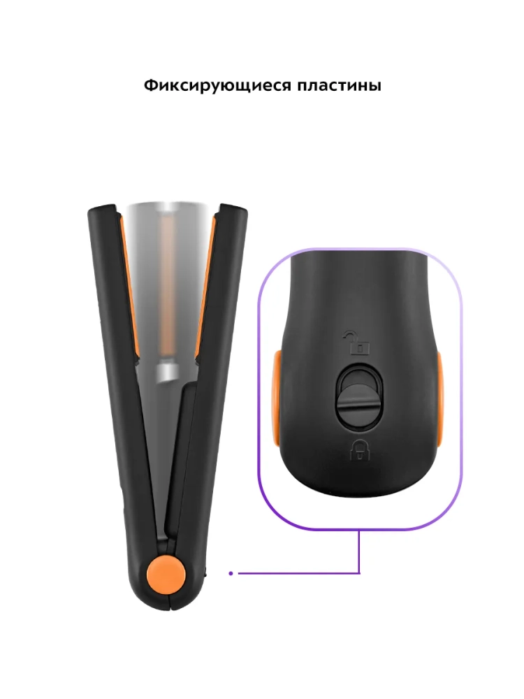 Прибор компактный и работает от аккумулятора, вы можете брать его с собой и использовать в любое время и в любом месте. Заряда аккумулятора хватает на 30 минут работы прибора. Таким образом, для создания укладки вам не нужно будет искать место рядом с розеткой. В комплекте предусмотрен шнур USB Type-C для зарядки выпрямителя.