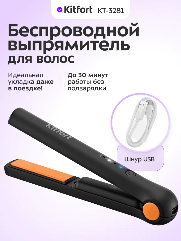 Беспроводной выпрямитель для волос КТ-3281 - 23 Вт