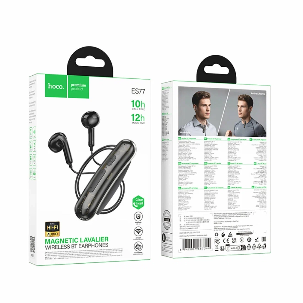 HOCO ES77 — лёгкие беспроводные наушники с шейным ремешком, сочетающие современный Bluetooth‑модуль, длительную автономность и удобное управление. Модель подходит для повседневного использования, спорта и поездок.
