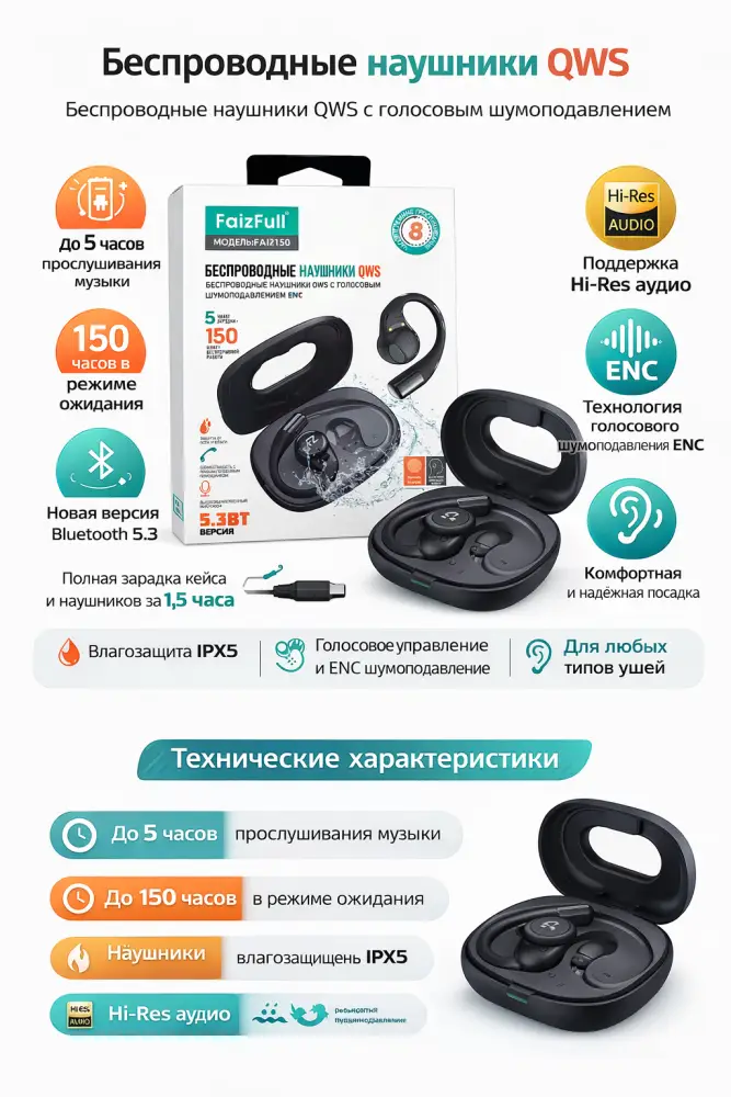 Беспроводные наушники FaizFull FAIZ150