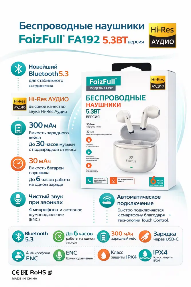 Новую модель последнего поколения отличает высокое качество сборки и материалов износостойкий корпус, сенсорное управление, доработанный до идеала внутриушной шумоподавлящий микрофон с превосходным качеством звука и отличная передача ритма, динамики с технологией пространственного аудио. Обновлённый блютуз позволит вам отходить от смартфона до 15м без потери качество звука. Наушники отлично подойдут для общения, прослушивание аудио во время занятий спортом в зале или тренировок на улице, бега или спортивной ходьбы.