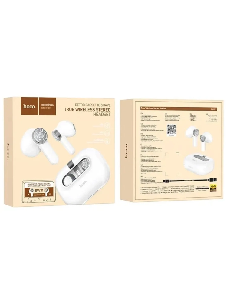 Дополнительные возможности Встроенный микрофон позволяет удобно отвечать на звонки и управлять голосом ассистента Siri прямо с наушника. Функция переключения между ведущим и ведомым режимом добавляет дополнительную гибкость в работе устройств.Таким образом, Hoco EW31 представляет собой идеальное сочетание качества звучания, удобства эксплуатации и долговечности заряда, превращаясь в идеальный выбор для активного образа жизни.