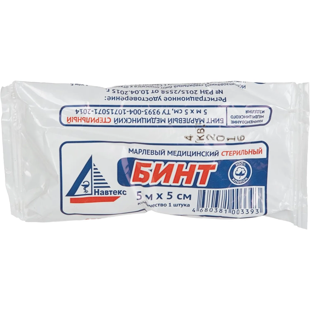 Бинт стер. 5мх5см, Навтеск ( инд син упаков,пл.27г) ШК04918