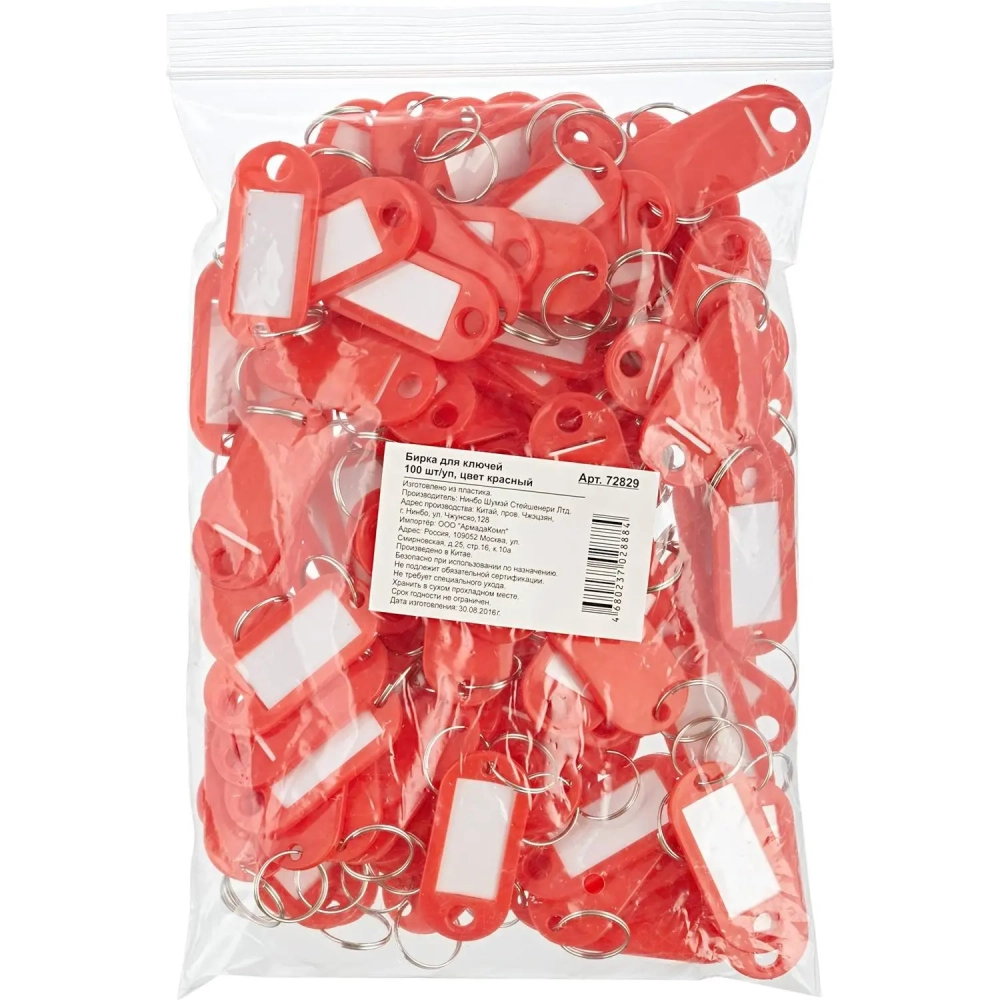 Бирки для ключей пластиковая, красная, 100шт./уп.
