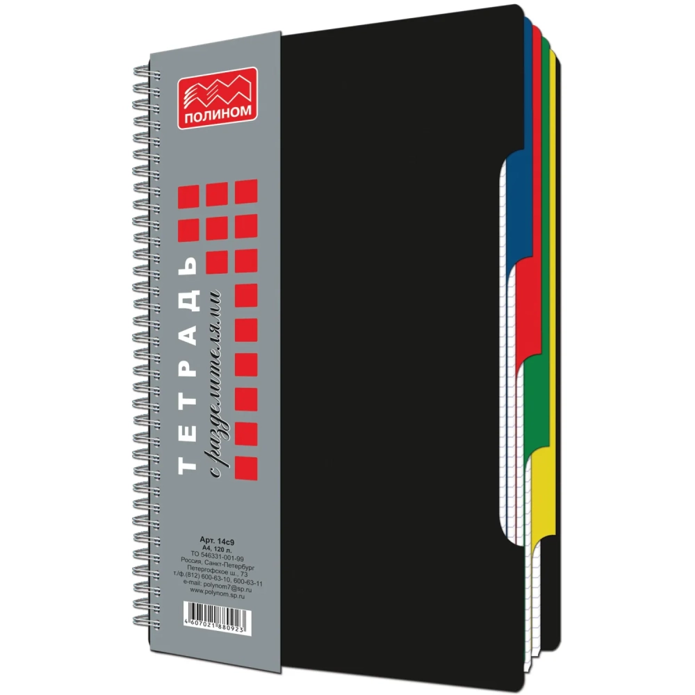 Бизнес-тетрадь А4,120л,кл,гребень,пластик.обл. с вырубк,4раздел ЧЕРНЫЙ 14с9