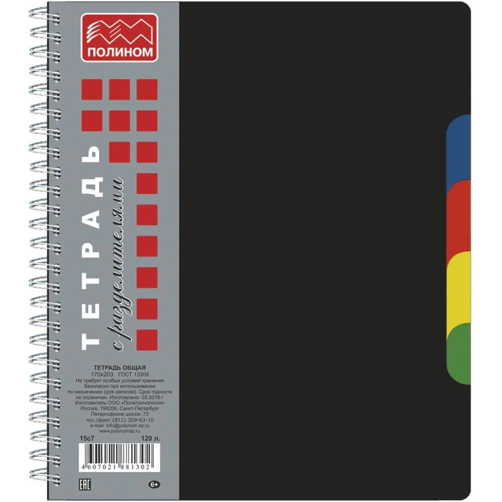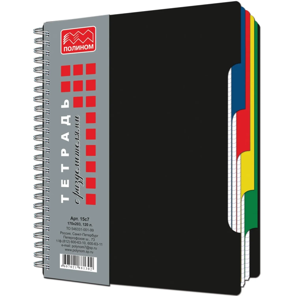 Бизнес-тетрадь А5,120л,кл,гребень,пластик.обл. с вырубк,4раздел ЧЕРНЫЙ 15с7