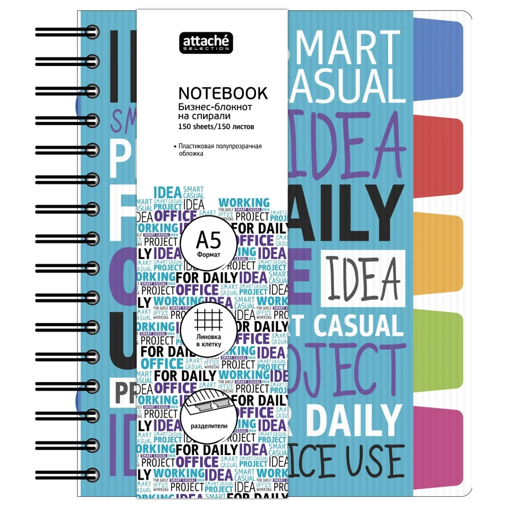 Бизнес-тетрадь А5,150л,клетка,греб. Attache Selection Office book 2 голубой