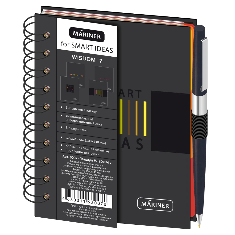 Бизнес-тетрадь Wisdom 7,А6,120л,100х140, 3 разд,рез под руч,клет,рад3,0007