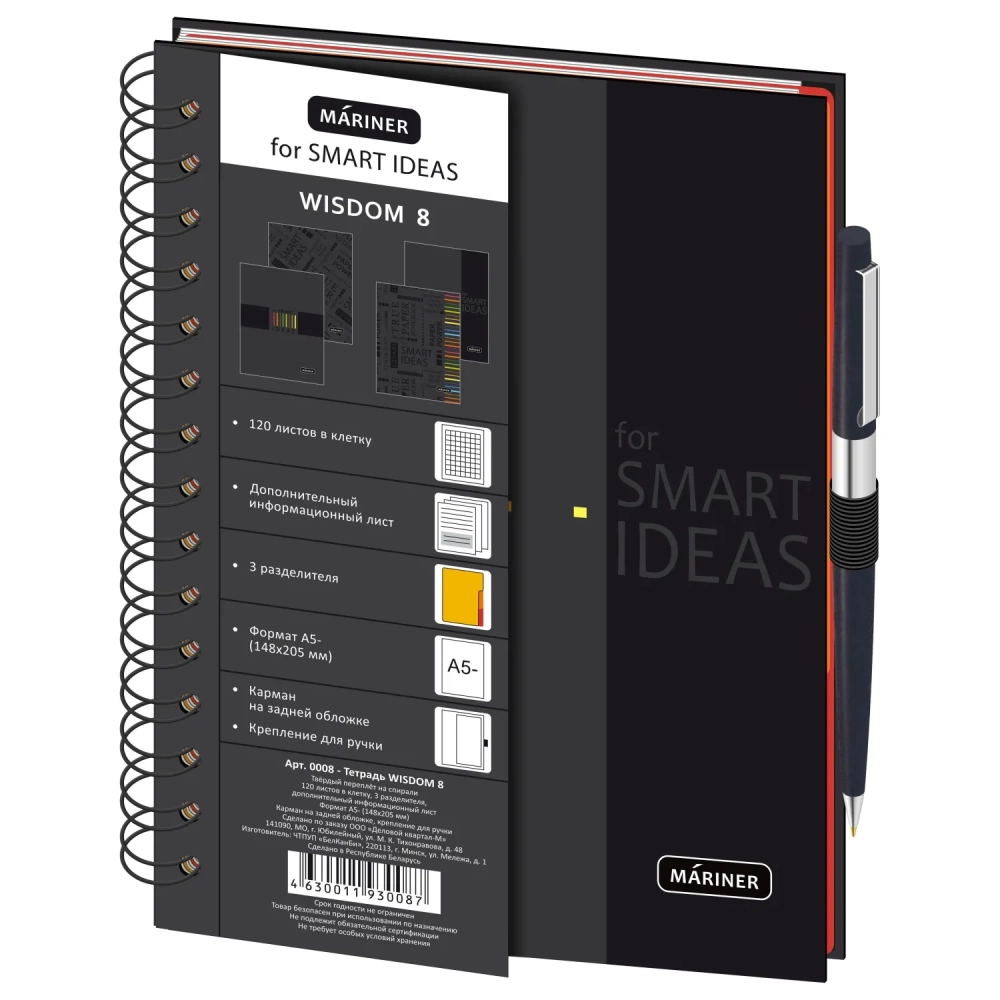 Бизнес-тетрадь Wisdom 8,А5,120л,148х205,3 разд,рез под руч,клет,рад1,0008