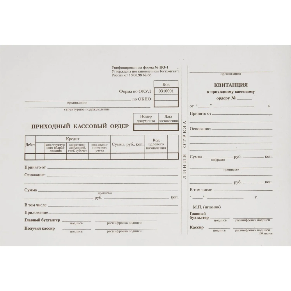 Бланк Приходный кассовый ордер (кн.100л.) в терм.пл.офсет