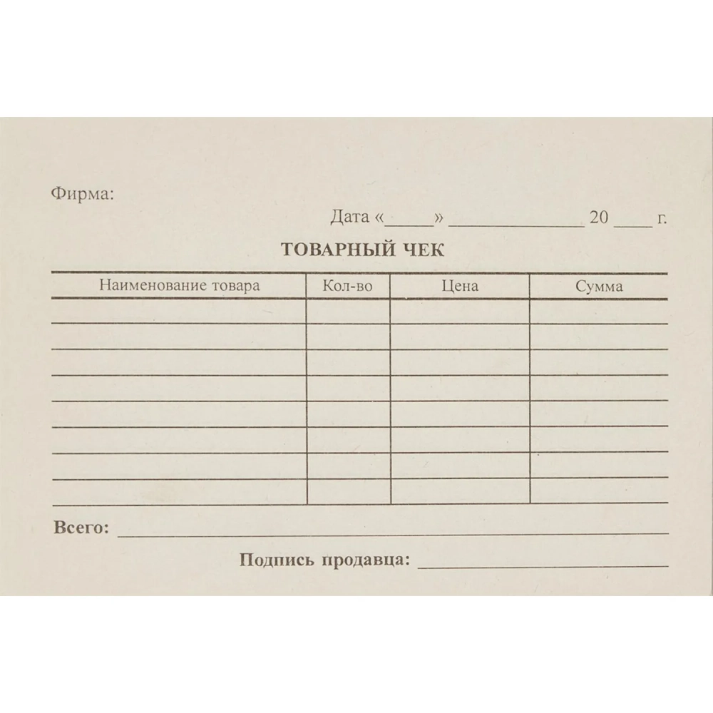 Бланк Товарный чек (кн.100л.), газетн.бум. 40 кн/уп