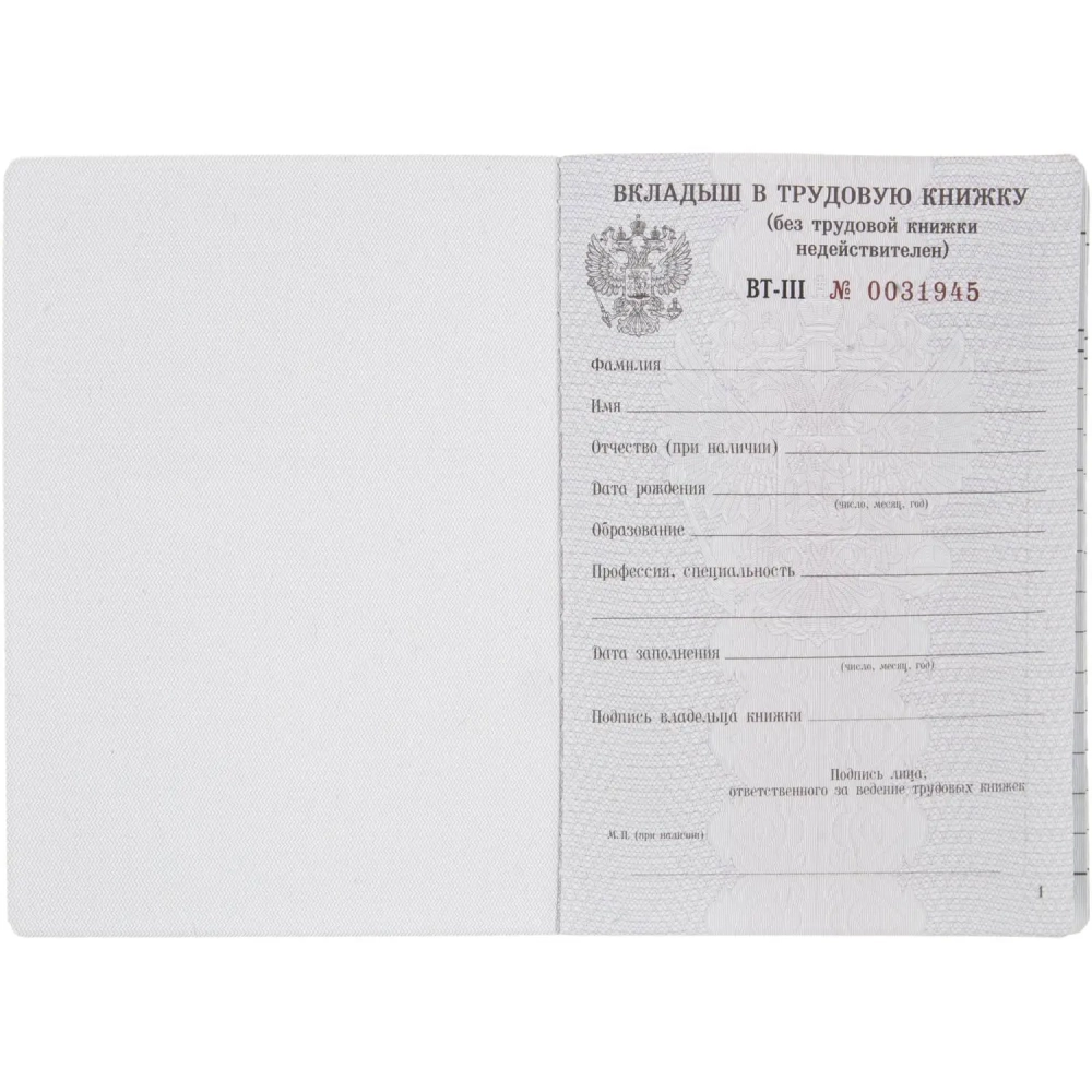 Бланк Вкладыш к трудовой книжке (новый 2023г)