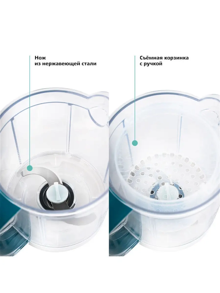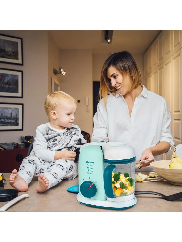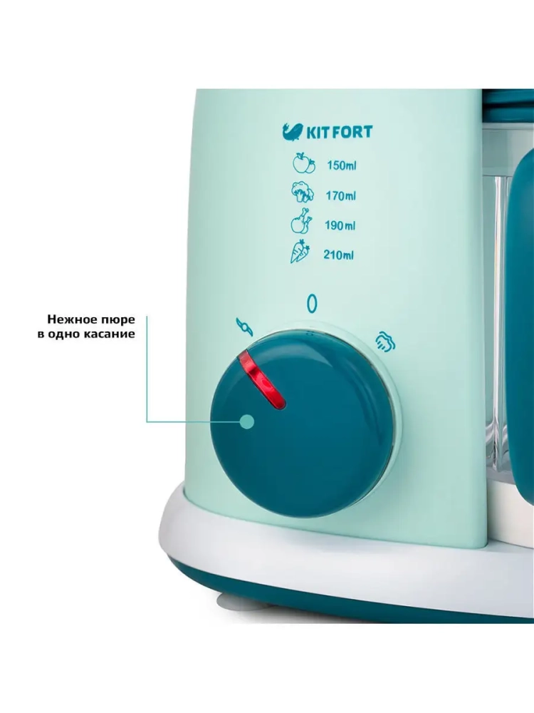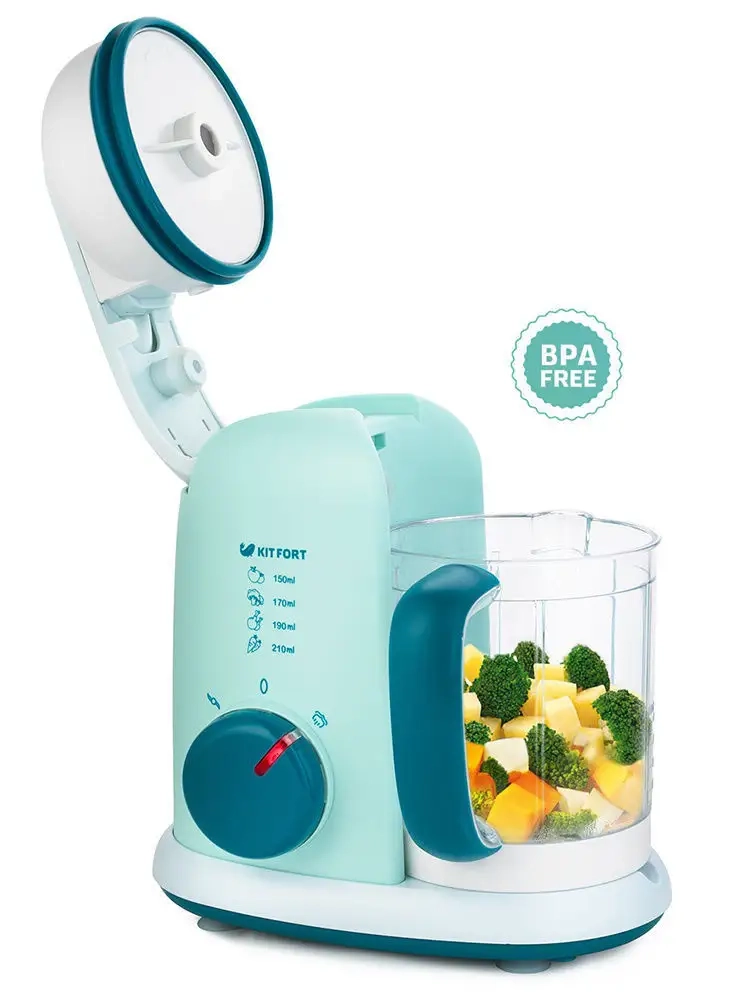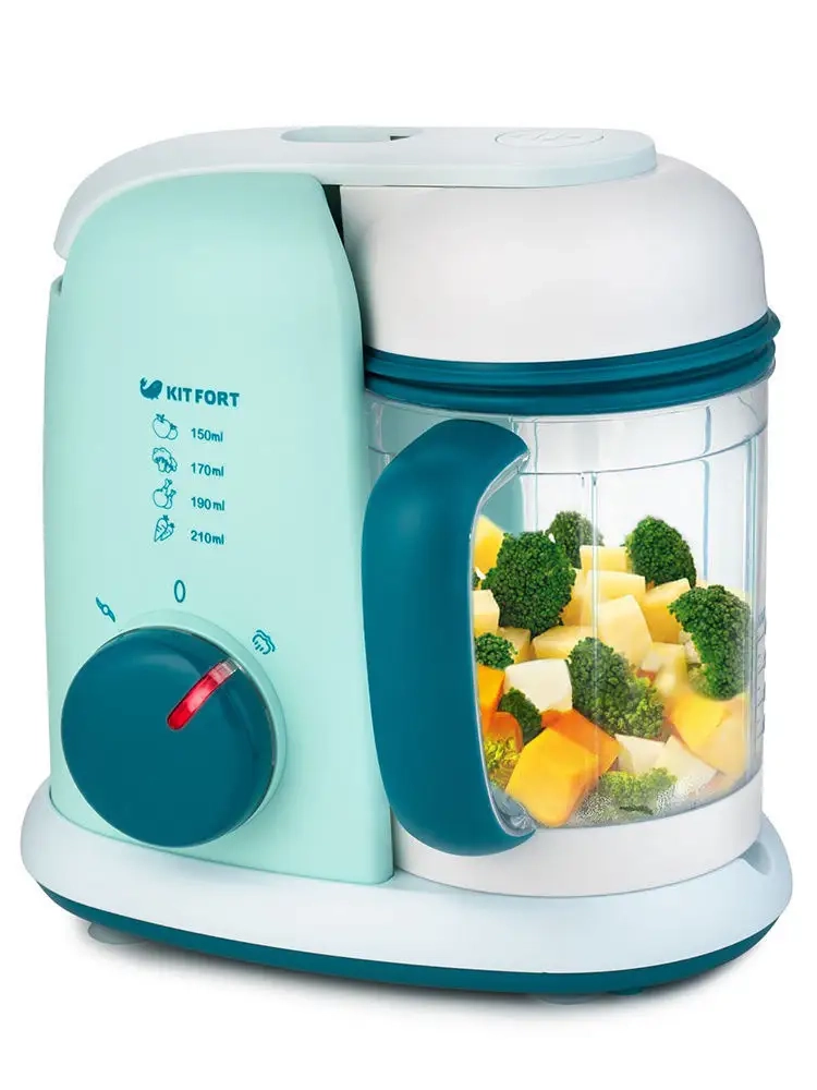 Блендер-пароварка Kitfort КТ-2305 имеет стильный бирюзовый дизайн, который украсит любую детскую кухню. Компактные размеры и мини-формат делают его удобным для хранения даже в маленькой кухне. Легкость мытья и ухода за прибором обеспечивается благодаря съемной чаше и другим элементам, которые можно быстро очистить после готовки.