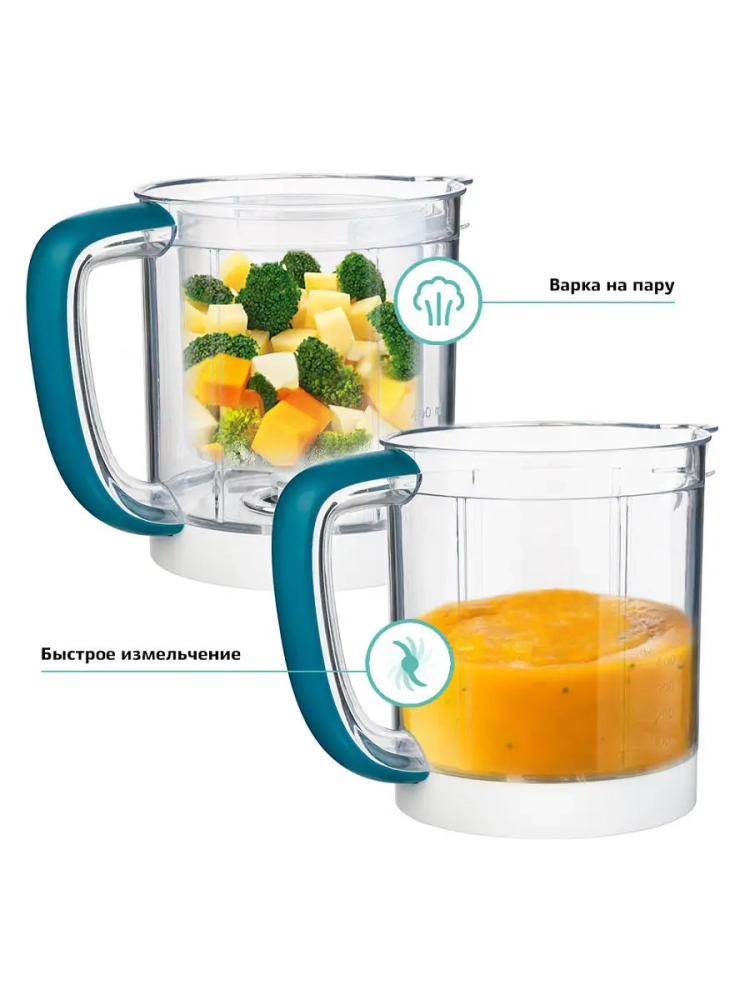 Блендер оснащен мощностью 400 Вт, что позволяет быстро и эффективно измельчать продукты до нужной консистенции. Чаша блендера выполнена из безопасной для малышей посуды, что гарантирует отсутствие вредных веществ в приготовленных блюдах. Объем чаши позволяет готовить как маленькие порции для новорожденных, так и более объемные блюда для детей постарше. В комплекте идет удобная лопатка для перемешивания и извлечения готового прикорма.