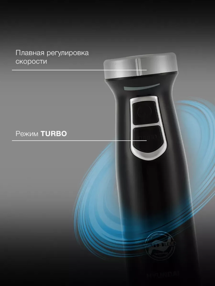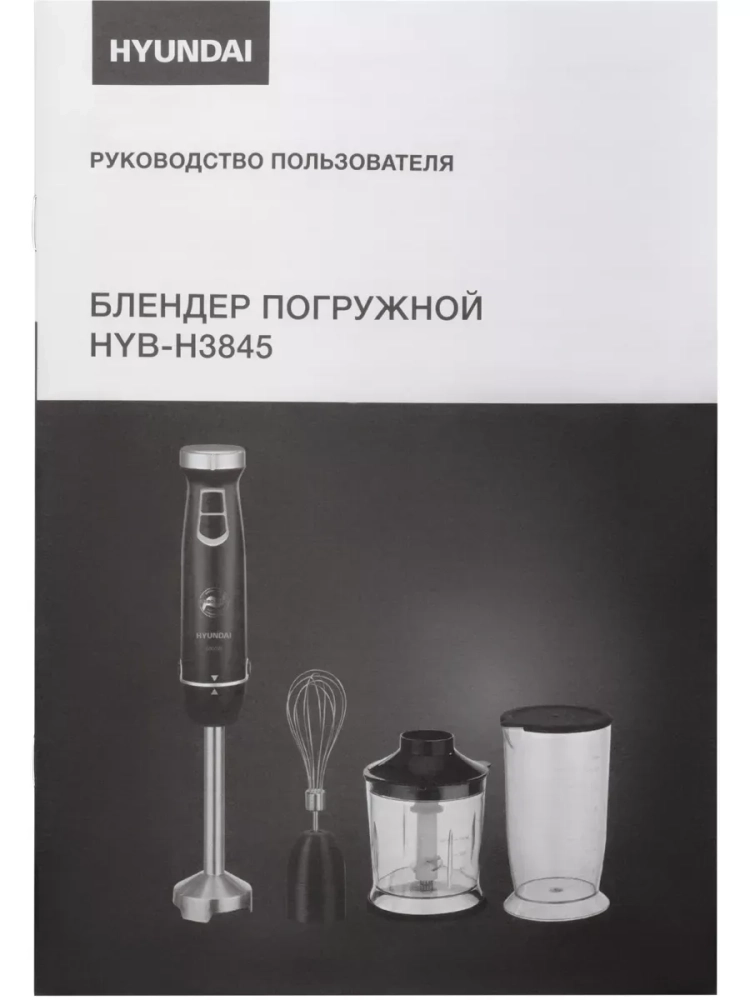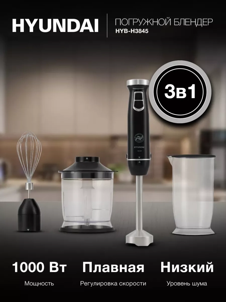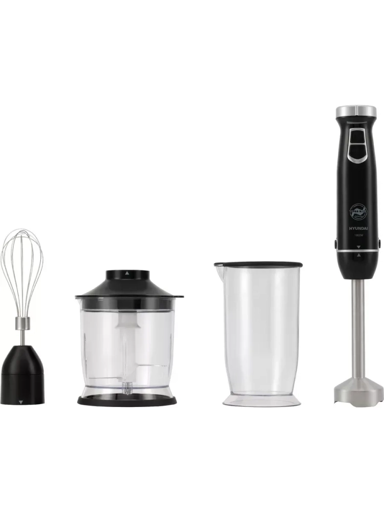 Блендер погружной Hyundai HYB-H3845 черный/серебристый, мощность 1000Вт, материал погружной части нержавеющая сталь